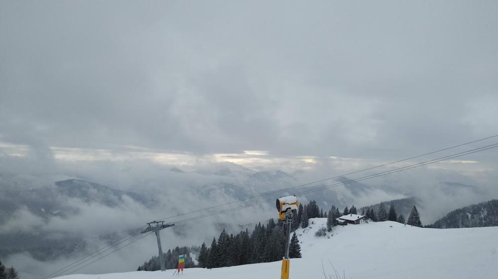 Abfahrt in 15cm Powder zur Anderlalm. Wieder aufgefellt und noch mal hoch. Bergstation Gondel. Dort fanden wir ein herrenloses Paar Stöcke und dachten, dass diese zu einem Snowboarder gehörten, der kurz vorher abgefahren ist. Über Facebook fanden wir auch den Eigentümer :)