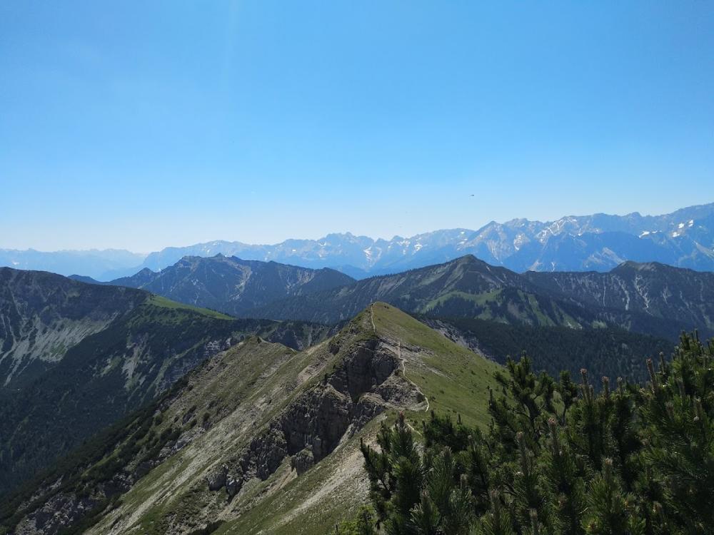 Gipfel für uns alleine gehabt. Tolle Aussicht. Etwas Wind, der schön kühlte. Leider viele Fliegen am GIpfel. Abfahrt vom Gipfel ging ganz gut, bis auf das ganz steile Stück. Danach in den Reitweg, der anfangs schwieriger /zugewachsener war, als ich in Erinnerung hatte. Im Mittelteil sehr schön (viele fahrbare Spitzkehren). Unten raus aber wieder zugewachsen und umgefallene Bäume auf dem Weg. Na ja, man kommt schon drüber. Der restliche Weg zum Forstweg sehr schön. Gemütlich Forstweg zurück zum Auto (über das trockene Bachbett gehts am Schnellsten). Wir haben genau 4 Stunden für die Tour gebraucht :)