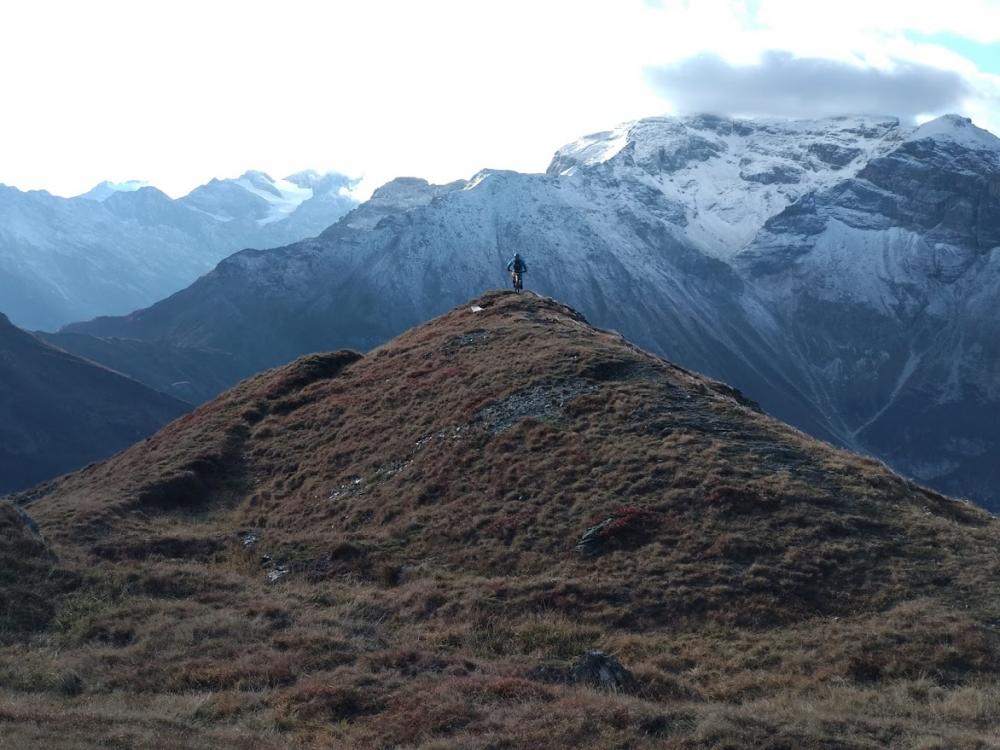 Man kann entweder auf dem gleichen Weg runter oder (Holger ists vorgefahren) auf der anderen Seite Richtung Westen runter. In beiden Fällen gelangt man wieder zum Sandjöchl. Dort beginnt ein fantastischer Trail nach Gossensass, der ein paar schwierigere Stellen hat, insgesamt aber sehr flowig ist. Traumtrail!