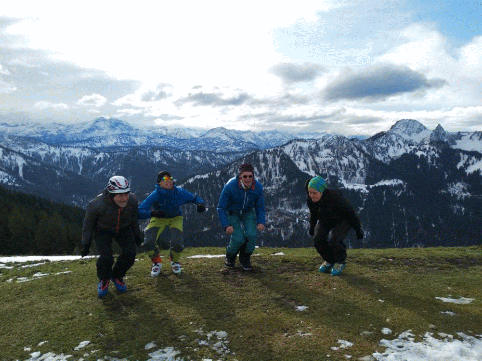 Hoch zum Rosskopf. Dabei Julian getroffen. Tolle Aussicht/Wetter. Abfahrt über den steileren Hang ging nicht gut (zu steinig), aber danach wars bis zum Auto ok. Zwar wenig Schnee, aber verfestigt, so dass man ganz ok fahren konnte.