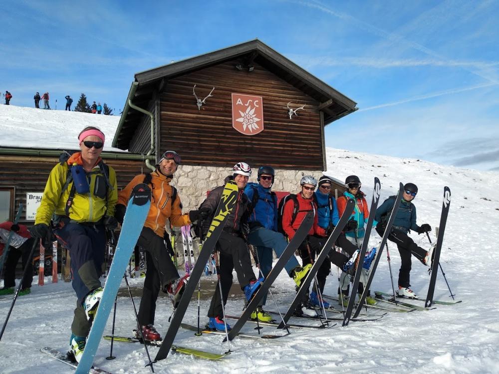 Da schönes Wetter war, waren sehr viele Tourengeher unterwegs. Beim Hochgehen haben wir 2 Gruppen gebildet. Ich bin mit Manfred, Frank und Stevie etwas schneller hoch, da wir eine zweite Abfahrt machen wollten.