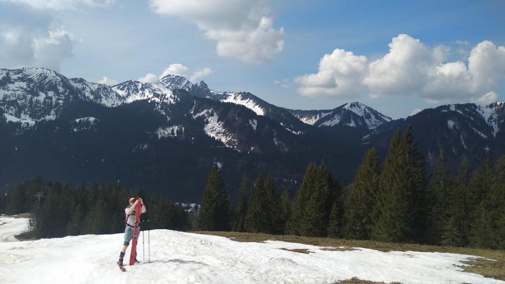 Man konnte aber gut bis nach ganz unten fahren. Aufgefellt und wieder hoch. Diesmal zum Rosskopf. Dort längere Pause in der Sonne.