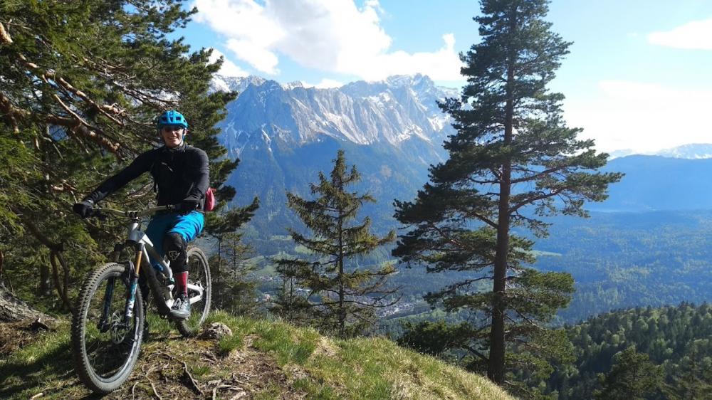 Runter und an der Steppbergalm den linken Weg nach Garmisch genommen. Der geht erst noch ein Stück hoch und dann mal steil - mal weniger steil runter. Manche Stellen sind wirklich knifflig, manche wurzelig mit Stufen und engen Kurven. Manchmal gibts auch flowige Stellen. Insgesamt toller anspruchsvoller Trail. Achtung aber auf Wanderer. Dieser Weg ist viel begangen.