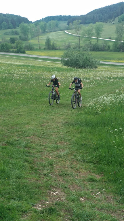 Da ich kein eigenes Bike dabei hatte, durfte ich mir mehr oder weniger eines aussuchen. Ich entschied mich für Caren's altes Cube Reaction, das mir zwar eine Nummer zu klein ist, dass aber noch sehr gut rollt/fährt. Was mir beim Aussuchen nicht klar war, ist, dass ich mit so einem leichtgängigen Bike sehr viel schneller bin als mit meinen eigenen (schwereren) Bikes.