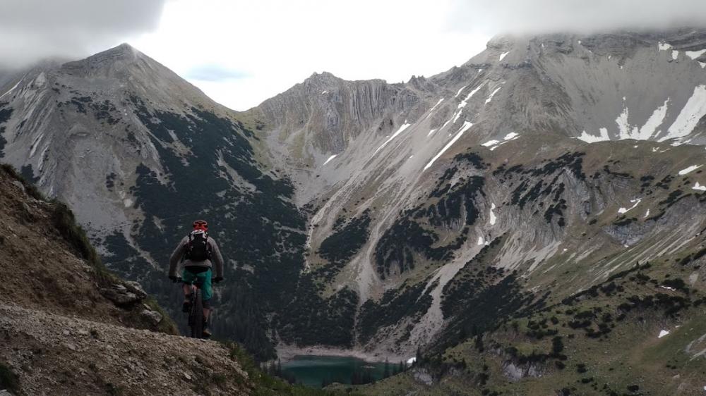 Lange Traverse und dann in Serpentinen hoch. Sinnvoll ist es, die Bikes am Joch abzustellen und die letzten Meter ohne Bike zum Gipfel (2050m).