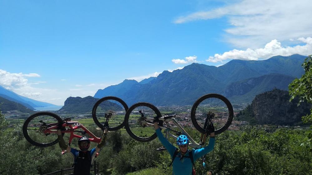 Kurz beratschlagt. In der Zwischenzeit ist das Wetter super geworden. Also noch eine kleine Runde. Nach Arco und dann zu den Pianaura-Kletterfelsen hoch. Bis ca. 500hm. Dort beginnt ein kleiner Trail, der zurück runter geht. Typischer Gardasee Holpertrail. Mit viele Steinen, aber auch kurzen schönen Passagen. Es war teilweise nass und deshalb sehr rutschig.