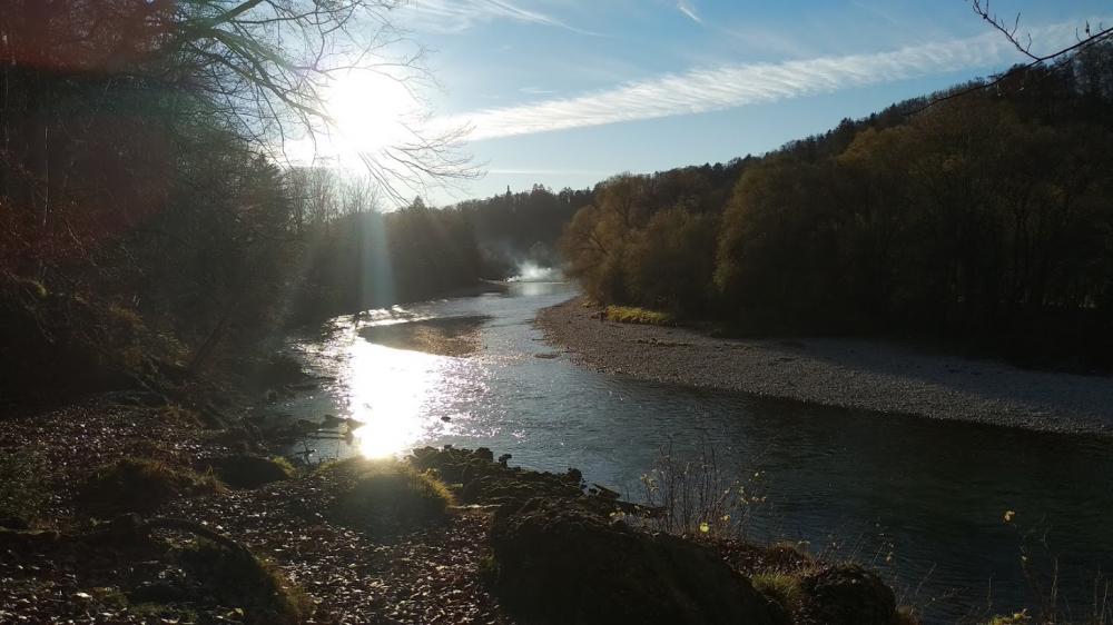 Geparkt an der Grosshesselsloher Brücke. Westseitig nach Süden. Super Eis in Pullach.