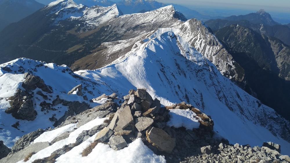 Ich alleine weiter. Es gibt eine etwas unangenehme Querung unterhalb des Gipfels. Gipfel schön. Tolle Aussicht. 2332m