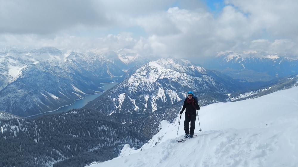 Ab Joch wieder mit Skier weiter und zum Gipfel (2161m). Schöne Aussicht.