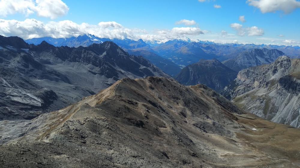Sachen gepackt, Ferienwohnung aufgeräumt und hoch zum Stilfser Joch. Geparkt bei ca. 2176m, wo der Trail enden sollte. Hoch erst kurz auf der Straße und dann rechts in einen sehr schönen Forstweg bis hoch zum Stilfser Joch und dann rechts zum Monte Scorluzzo (steil). Das letzte Stück schieben/tragen. Super Super Super Ausblick am Gipfel (3095m).