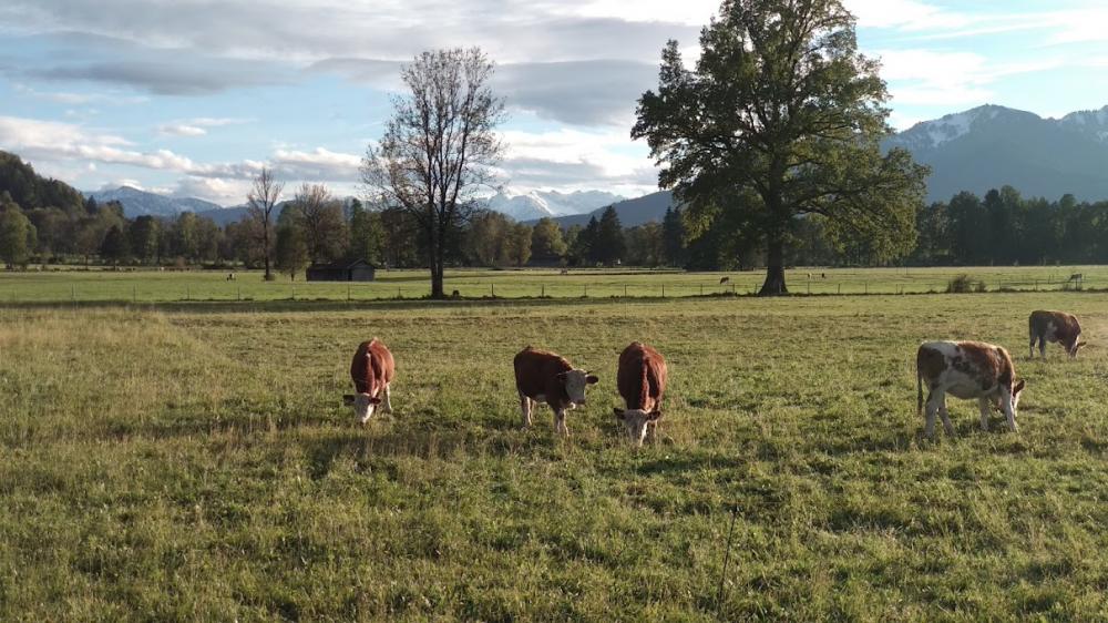Da mein Zeitfenster aber schon knapp war, verzichtete ich auf die letzten 50 Höhenmeter und fuhr stattdessen ab. Erst schön, dann auf Forstweg, dann wieder schön, dann über eine Almwiese und zur Schwaiger-Alm. Dort gibts schöne Aussicht auf Bad Tölz. Dann auf einen schönen Trail, der aber an einer Kreuzung ein Verbotschild hatte (Weg nicht geeignet für Bikes...). Hmmm. Nachdem nicht klar war, ob das Schild ein offizielles Schild war, fuhr ich auf dem Trail weiter. Und ja, der Trail ist tatsächlich stellenweise nicht geeignet. Zum einen muss man über x Kuhgatter und zum anderen ist er stellenweise sehr matschig/lehmig und steil. Diesen Weg muss ich nicht nochmal fahren...Ich war dann froh als ich unten in Lehen ankam und zurück zur Jugendherberge fahren konnte und dort auch rechtzeitig ankam.