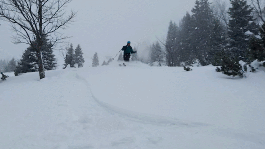 Bei der Abfahrt erst nach links und in der freien Schneise schön nach unten. Sogar dann ganz nach unten, da wir das Gefühl hatten, der Schnee hält. Tolle Abfahrt.