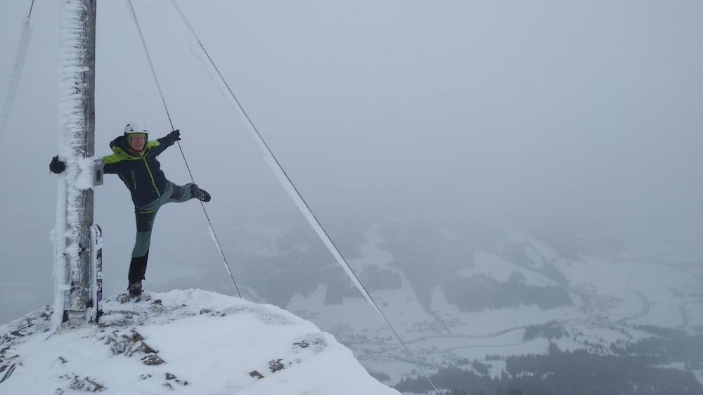 Ella und ich zogen es durch und sind bis zum Gipfelkreuz (wir waren die zweiten an dem Tag). Sehr einsam.