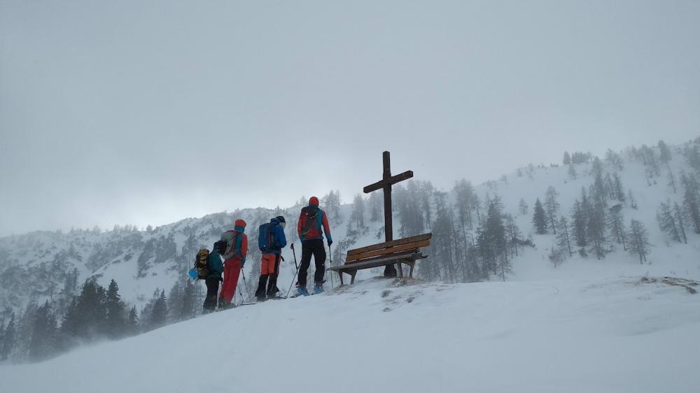 Auf der Alm haben wir Pause gemacht (windgeschützt) und uns dann aufgeteilt. Eine Gruppe ging zum Gipfel - eine Gruppe machte Pause und fuhr ab (wegen dem Wind).