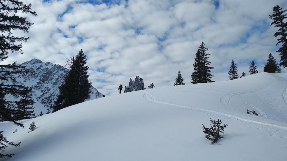 Normalen Weg hoch und dann oben entschieden noch den Hang zum Risserkogel hochzuspuren. Ich war wegen etwaiger Lawinengefahr vorsichtig, aber an dem Tag war in dem Hang keine Lawinengefahr.
