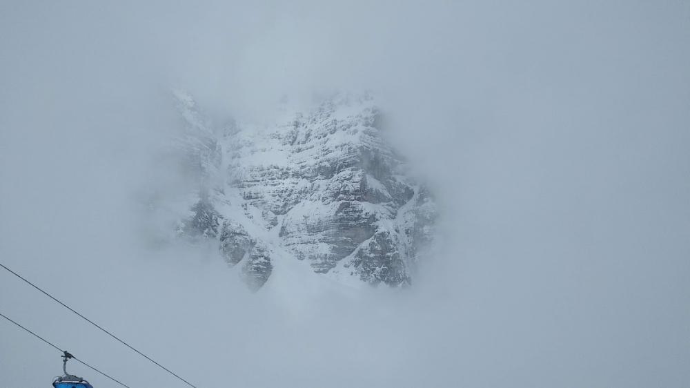 Das Wetter war an dem Tag nicht gut. Schneefall und wolkig. Also entschloss ich mich zum freeriden mit dem Snowboard im Skigebiet Schlick 2000, das auch ganz nah an unserem Hotel in Fulpmes war.