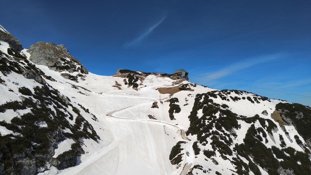 Ich bin in der Mulde zwischen Hochalm und Osterfelder hoch. Dort war schöner Firn und man kommt zu einem schönen Aussichtspunkt. Die Abfahrt war sehr gut und bin dann auch noch den Bernadeinlift runter. Dort eine kurze apere Stelle und unten raus sehr aper. Wieder aufgefellt und hoch. Abfahrt zur Hochalm und dann hoch zum Längenfelder. Dort teilweise schon nur noch sehr dünne Schneeauflage (teilweise mehr Eis). Abfahrt da war gemischt. Zum Kreuzeck rüber getragen und dann den Auffahrtweg abgefahren, um meine Jacke zu finden. Runter konnte man natürlich auch noch die Schneeflecken fahren, d.h. evtl nur 200hm tragen.
