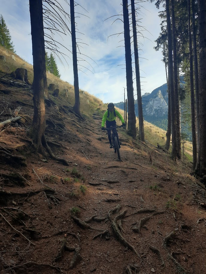 Geparkt auf dem kostenlosen Parkplatz zwischen Ettal und Oberammergau. Am Fluss entlang auf dem Fahrradweg (sehr schön!) erst nach Ober- dann nach Unterammergau. Dort dann hoch Richtung Pürschling. Um den Parkplatz paar mal rum (wir fanden den Weg nicht) und dann auf einen Forstweg westlich vom Parkplatz. Der geht dann irgendwann hoch (stellenweise steil) und auf einen Hügel (Waldalmrunde), von dem man eine nette Aussicht auf das Tal hat. Unspektakulär (d.h. ohne Trail) gehts wieder runter. Bisschen auf und ab und dann gabs endlich einen schönen, wenn auch kurzen Trail Richtung Altenau. Dann aber wieder am Fluss entlang zurück nach Unterammergau. Durch Unterammergau und hoch Richtung Aufacker. Da wirds zum Teil steil, zum Teil muss man schieben, zum Teil kurz tragen (da Wanderweg). Oben läuft dann wieder ein Forstweg. Den entlang und bis zum Trail, der nach Oberammergau runtergeht. Der ist sehr schön mit Spitzkehren und Wurzeln, aber immer fahrbar.