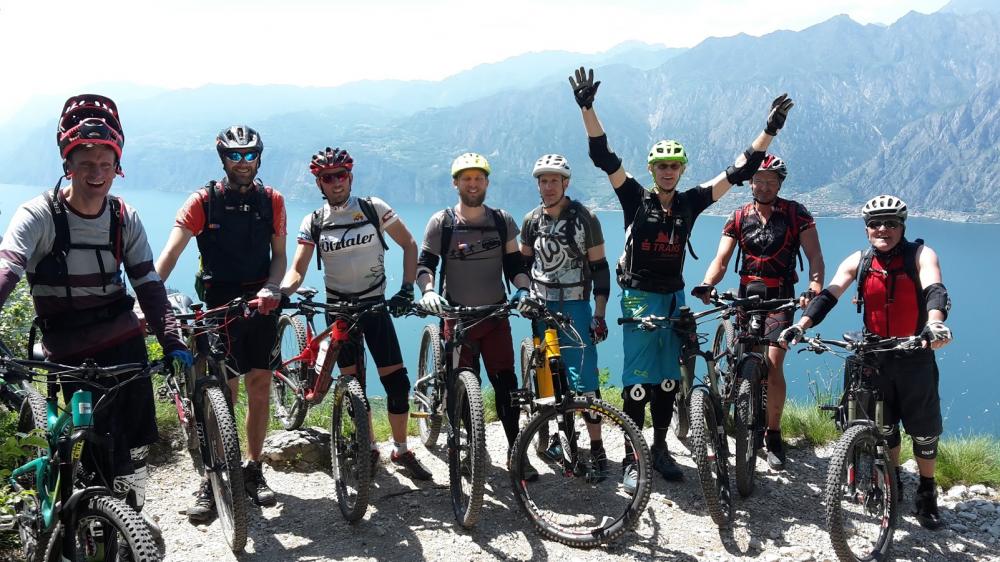 Dann die Straße zum Altissimo hochgekurbelt. Irgendwann ist der Einstieg in den Navene-Trail, wobei ich beim letzten Mal einen besseren Einstieg hatte. Stevie mit Platten. Trail anfangs leicht, ab Aussichtsfelsen schwieriger. Aber meist ganz gut zu befahren. An der Abzweigung nach Malcesine haben wir beschlossen, den Weg mal auszuprobieren. Erstmal gleich falsch gefahren (zum Bocca di Navene), dann zwar den richtigen Weg gefunden, der aber grösstenteil hoch ging (schieben!) und dann auf der anderen Seite nach Malcesine runter. Leider auf befestigen Wegen! D.h nix schönes Trail :(