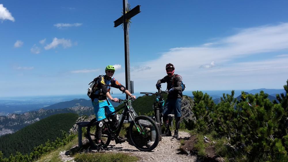 Mit dem Auto nach Graswang. Auf dem Wanderparkplatz (3 Euro) abgestellt und losgeradelt. Zur Kuhalm hoch, dann noch ein Stück den Forstweg weiter und rechts in den Kienjoch-Steig. Erst schiebend, dann tragend. Schweisstreibend! Die Küh haben zugeschaut! Bis hoch zum Joch und nach kurzer Rast bis zum Gipfel (1950m). Dort das tolle Panorma genossen und auf die schwierige Abfahrt runter. Gipfelweg meist schön fahrbar. 1 Stelle für uns absolut unfahrbar. Am Joch rechts in den für König Ludwig erbauten Reiterweg, der in vielen Serpentinen ins Tal führt. Meist gut fahrbar, etwas zugewachsen. Viele Spitzkehren!!!