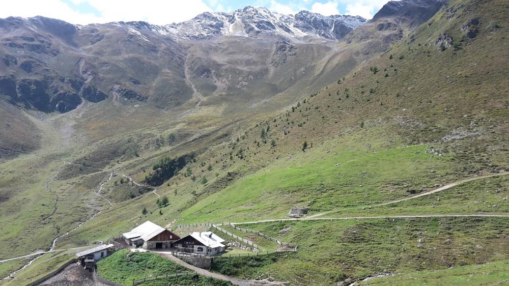 Vom Hotel in Trafoi auf der Straße nach Gomargoi. Dann hoch Richtung Stilfs. Am höchsten Punkt links Richtung Furkelhütte. Erst Teerstr., dann Forstweg. Immer gut zu fahren. Gute Steigung. Nach der Prader Alm, aber vor der Furkelhütte nach rechts Richtung Stilfser Alm. Forstweg wird zum Wanderweg, aber meist fahrbar (rauf/runter). Das letzte Stück zur Alm ist dann etwas steiler. MIttagspause auf der Alm. Nudelsuppe (gut). Dann weiter auf dem Weg Nr. 11. Rauf (teilweise geschoben) bis zum höchsten Punkt. Von dort nur noch bergab über viele Serpentinen. Immer auf dem Weg Nr. 11. Unterschiedlich schwer, meist S1-S2. Schön zu fahren! Die letzten 200hm nach Prad waren dann ein breiter Weg. In Prad Wuschel im Café getroffen.