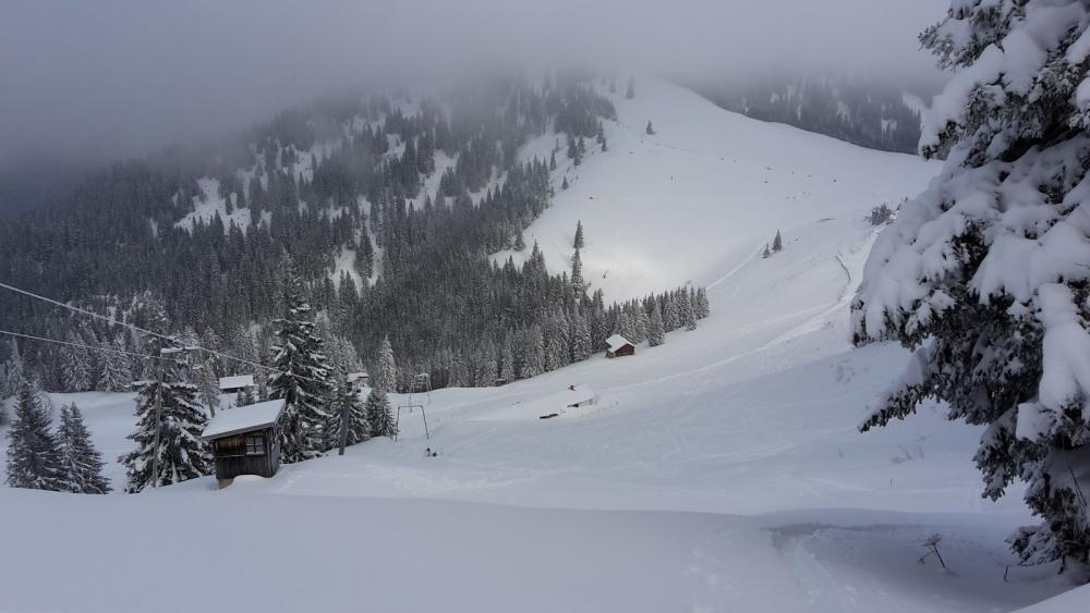 Geparkt am Sutten. Hoch zum Setzberg. Erst zum Skilift, dort entlang runter (super Pulverschnee, noch fast unberührt). Bis zur zweiten Forstwegquerung runter. Dann wieder hoch und zum Gipfel. Dann erst den Osthang (der ist ja echt super) und dann in den Nordosthang und zurück zur Aufstiegsstrecke. Ohne Steinberührung runter zum Parkplatz. Sehr schön!