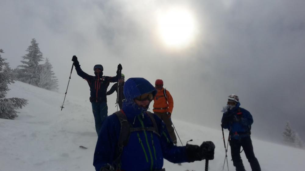 Abgefahren im Blindflug, Manfred hatte schon eine eisige Nase... Sobald man Latschen gesehen hat, gings besser und der Haupthang war sehr schön zu fahren. Ludwig, Ella, Holger und ich sind dann auch nochmal hoch und diesmal den Haupthang links runter. Video zeigt das. Eine andere Gruppe ist sogar 3 mal hoch :)