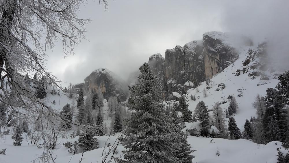 Abfahrt dann vorsichtig im Nebel. Sehr schade, da oben der Schnee gut war. Danach wurde es harschig, v.a. im eigentlich schönen Waldstück ab der Kotalm. Ich bin zuweit rechts runtergefahren und musste wieder hochsteigen, da rechts in ein paar sehr steile Rinnen runter geht, die man besser nicht runter fährt. Links dagegen gehts gut zu den Almen.