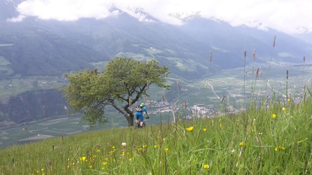 Wir reihten uns ein und fuhren den schönen Trail relativ ruhig ab. Ca. 800hm bis nach Schlanders. Die letzten Höhenmeter waren schwierig. Hier fährt man auf dem Wanderweg. Die Steine waren etwas rutschig.
