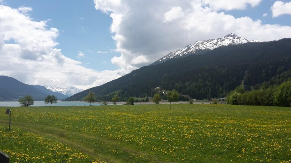 Kai hat mich abgeholt. Auf der Autobahn Holger und Stevie überholt. Am Reschensee getroffen. Parkplatz in Reschen ist besser als Parkplatz Schöneben, da umsonst.