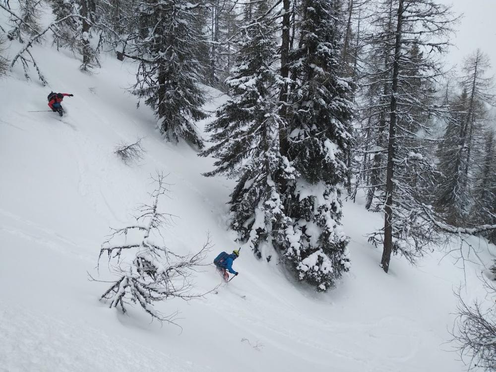 Es gab schon eine noch zu erkennende Altspur, der wir gefolgt sind. Man kommt bei der sehr schönen Bröcklalm vorbei. Ca. 100hm unter dem Gipfel (2212m) haben wir aufgrund des Windes und der schlechten Sicht gestoppt und abgefellt. Abfahrt zur Bröcklalm war sehr schön und auch danach gabs noch ein paar schöne Stellen; nur die letzten 200hm waren blöd, da der Wald sehr sehr dicht wurde. Mit dem Snowboard bin ich an jeden Baum angestossen...