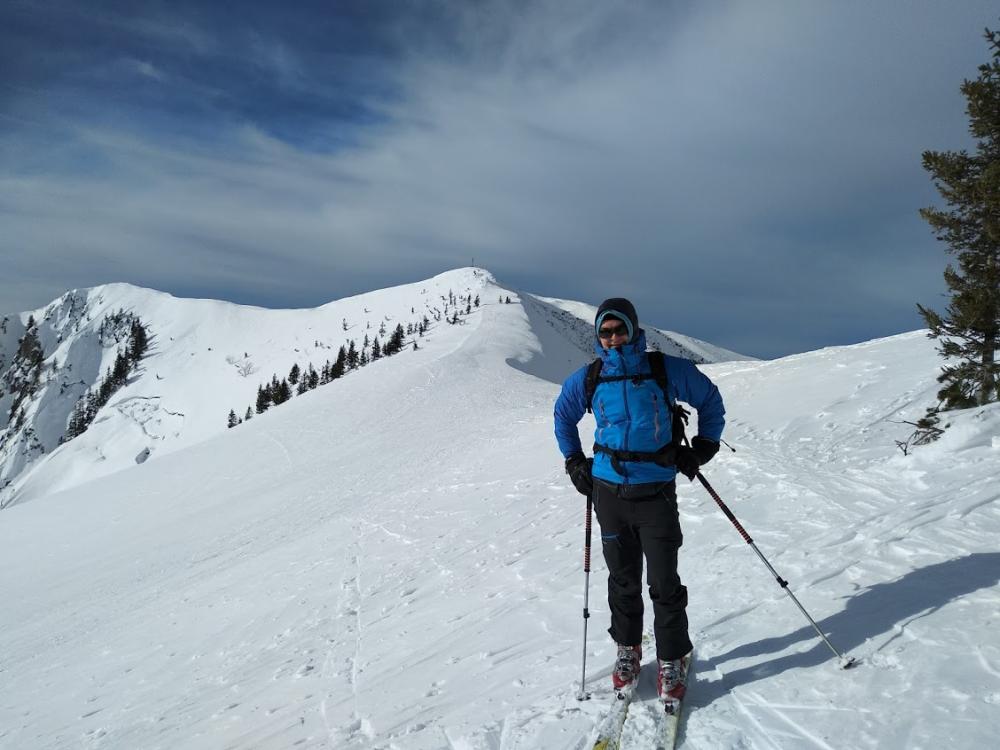 Hoch zum Jägerkamp. Am Grat sauwindig. Umgebaut und ohne Max abgefahren. Er wollte auf mich warten. Ihm wäre es sonst zu viel geworden. Abfahrt war sehr windgepresst. Mit dem Snowboard gings aber ganz gut. Wo der Wald anfängt, habe ich wieder aufgefellt und bin wieder hoch zum wartenden Max (< 1h). Gemeinsam dann abgefahren, wobei ich mal die ganz steile Abfahrt probiert habe. Fast zu steil für Snowboard; nicht genügend Halt...Der Schnee war in der Sonne Schei... Ich bin mit dem Board nicht weitergekommen und musste 2 mal abschnallen. Dann noch Max kurzzeitig verloren (er hatte mich nicht gesehen..), aber dank Handy wieder gefunden. Gemeinsam das schöne untere Stück abgefahren. Wir waren bereits um 15.20 Uhr wieder in München.