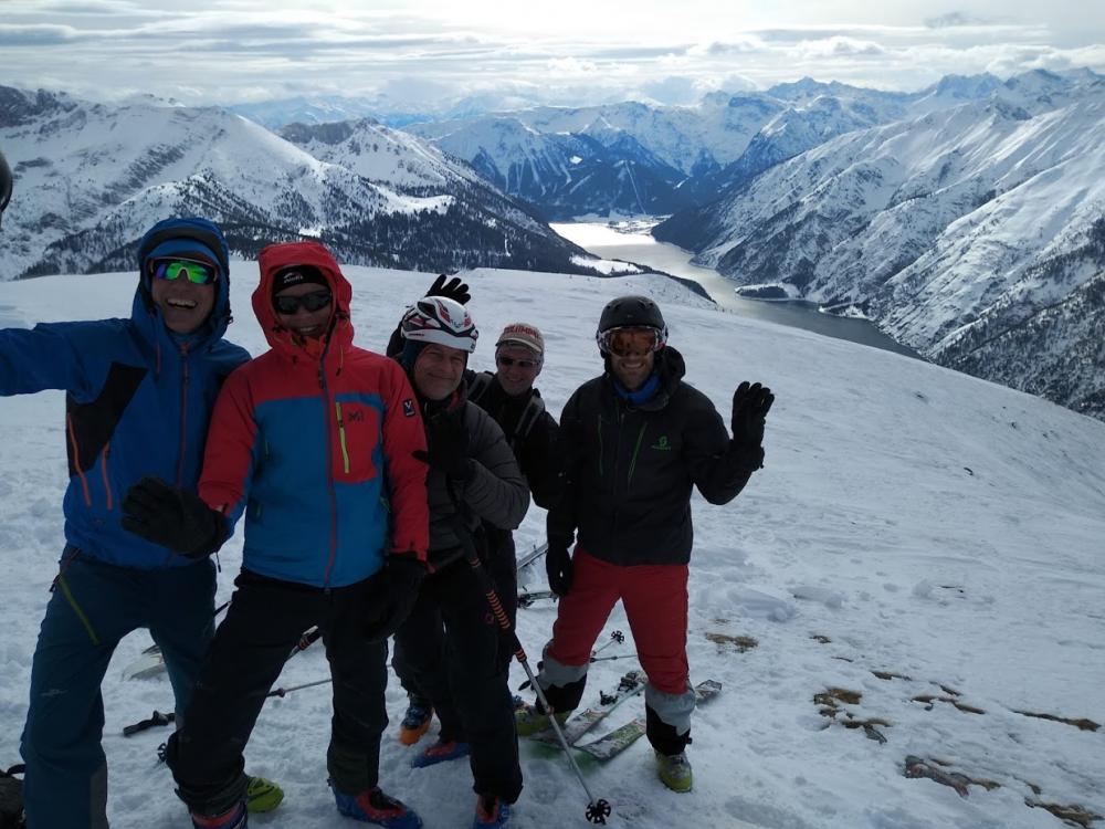 Geparkt an einem privaten Parkplatz auf der Straße nach Steinberg. Ein paar hundert Meter weiter könnte man auch kostenlos an der Straße parken. Dann auf der Langlaufloipe nach Steinberg zum Skilift und dort hoch und gleich nach rechts in den Wanderweg, der zum Unnütz geht. Den immer nach und weil die Latschen so schön zugeschneit sind, gemütlich nach oben. Leider war es oben extrem windig. Föhnsturm. Am Grat häts mich beinahe weggeweht. Das war schade, da Ausblick wieder fantastisch war. Wir sind dann direkt vom Gipfelkreuzdes Vorderunnütz (2078m) in den GIpfelhang eingefahren. Ging eigentlich ganz gut, wenn nur der starke Wind nicht gewesen wäre. Gipfelhang war sehr schön zu fahren, unten dann links gehalten; da kommen dann steile Hänge, die nur bei sicheren Verhältnissen zu fahren sind. Dann nach links rüber gequert und auf der anderen Seite wieder aufgefellt. Es gab schon eine Spur, der sind wir gefolgt und dann nach links rüber gequert und zum Grat des Hochunützs hoch, bis wir die Stelle fanden, von der man über eine steile Einfahrt ins Nachbarkar fahren konnte. Es waren auch 3 Leute am Hochunnütz-Gipfel und kamen grad runtergelettert. Das sah aber super mühsam und auch gefährlich aus. Wir sind die steile Stelle runter und hatten danach viel viel Platz für schöne Schwünge in super Schnee. Erst unten raus wurde der Schnee nass und schwerer. Das Kar läuft sehr schön aus. Nur bei den letzten 100hm muss man sich durch den Wald quälen (da gibts aber auch einen Weg).