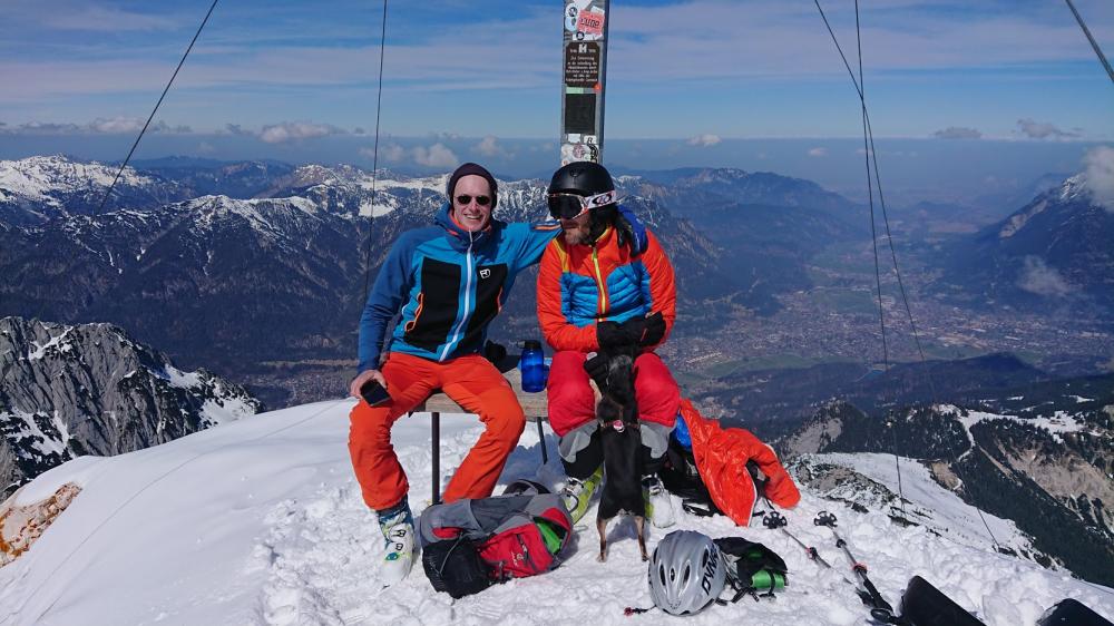 Um 6.45 Uhr bei mir losgefahren. Bisschen Stau in Garmisch. Um ca. 8.30 Uhr sind wir die Kandahr hoch. Ging ohne Harscheisen. Um kurz nach 10 Uhr waren wir am Kreuzeck, wo uns 2 Tourengeher entgegenkamen, die bereits am Gipfel waren. Wahnsinn. Die müssen vor 5 Uhr losgegangen sein..