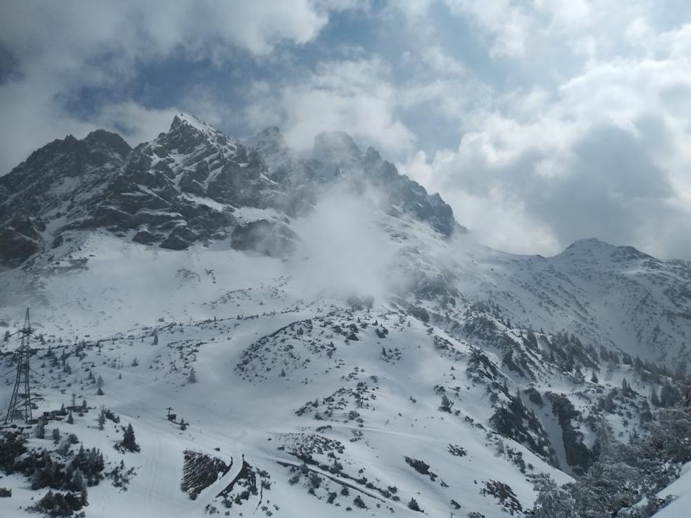 Wetter war so so. Wolken, bisschen Sonne. Es hat nicht gereicht, um den GIpfelhang aufzufirnen. Super war aber, dass es nicht windig war. Gipfelpause genossen.