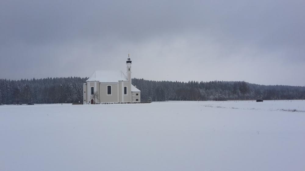 Kurz vor Dietramszell gibt es den Loipenparkplatz bei der Kirche St. Leonhard (siehe Foto). Parkplatz kostet nichts, ich habe aber 2 Euro in den Loipenspendenbox geschmissen.